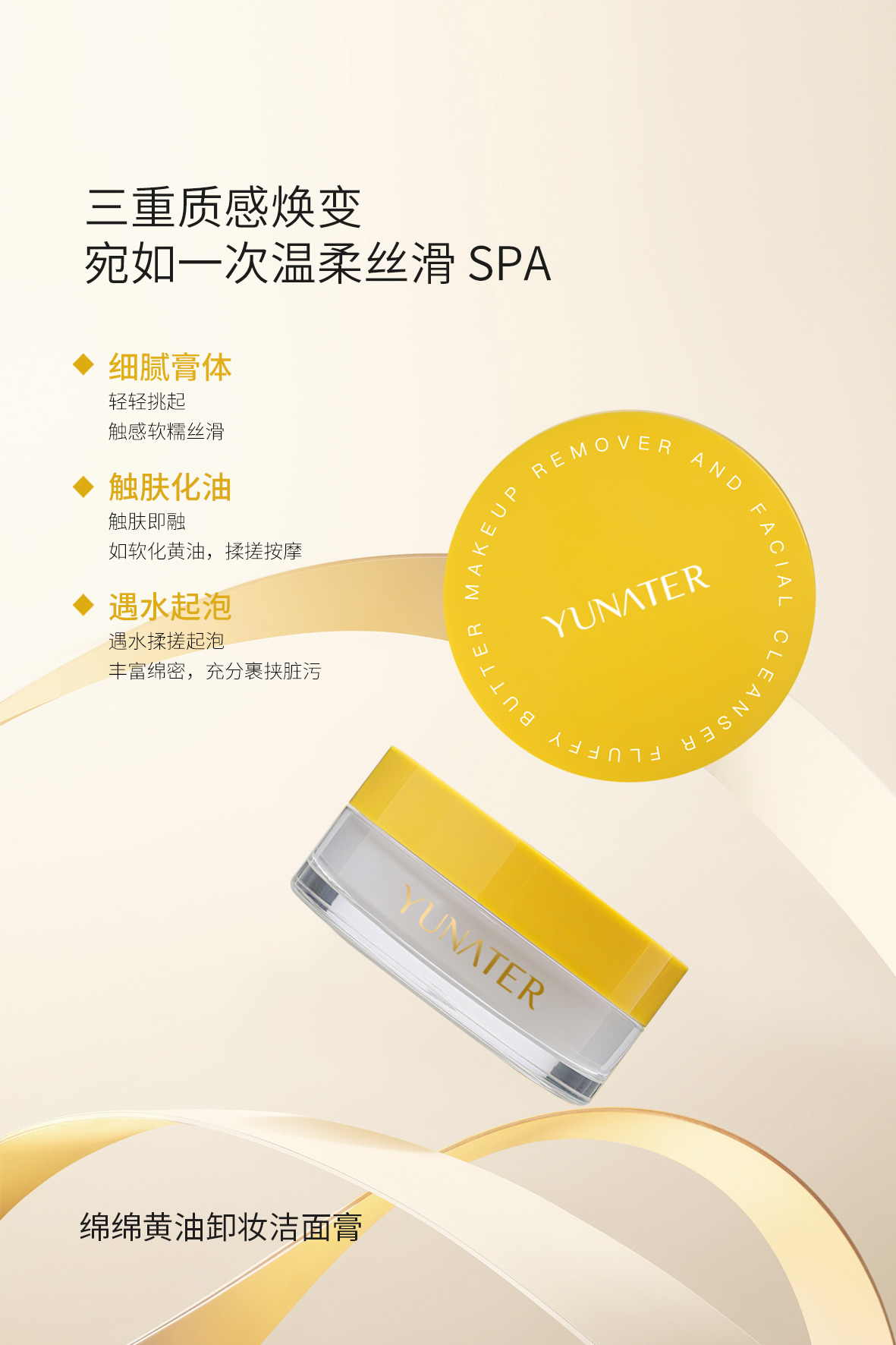卸妆级洁面 ,洗卸合一拒绝繁琐 ,温和洗净防晒带妆,三重质感焕变。细腻膏体软糯丝滑;触肤即融如软化黄油;遇水揉搓起泡,丰富绵密,充分裹挟脏污,宛如一次温柔丝滑 SPA。