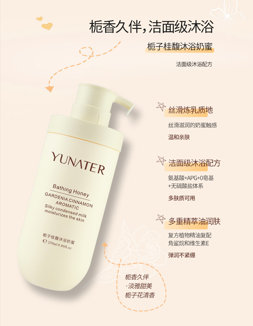 丝滑滋润的奶蜜触感,净透清洁力兼顾温和特性,浴后弹润不紧绷